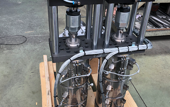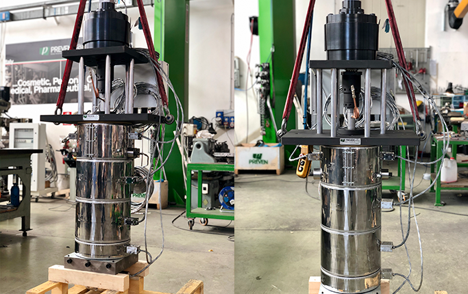 Delivered to an American customer an extrusion head suitable for the production of containers up to 10 lt. complete with thickness regulation device, hydraulic type. Features of this extrusion head: Parison number: 2 Max Die Ø: 160 mm Monolayer – Overlapping design (cardioid) Suitable to process also ‘hard’ plastic materials such as HIGH MOLECULAR WEIGHT POLYETHYLENE (HMPE- HMWPE) having very